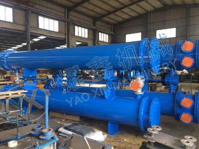 該冷卻器采用雙聯(lián)結(jié)構(gòu),由兩只相同面積的冷油器和三通閥裝置構(gòu)成,一只工作,一只備用,每個(gè)冷卻器能承擔(dān)整個(gè)系統(tǒng)的冷卻負(fù)荷,管板一頭固定,一頭浮動(dòng)、可拆卸的管束和水室箱蓋,便于運(yùn)行過程中清洗、檢查和維修。冷卻器的材質(zhì),根據(jù)使用場(chǎng)所、水系統(tǒng)條件可有多種選擇。